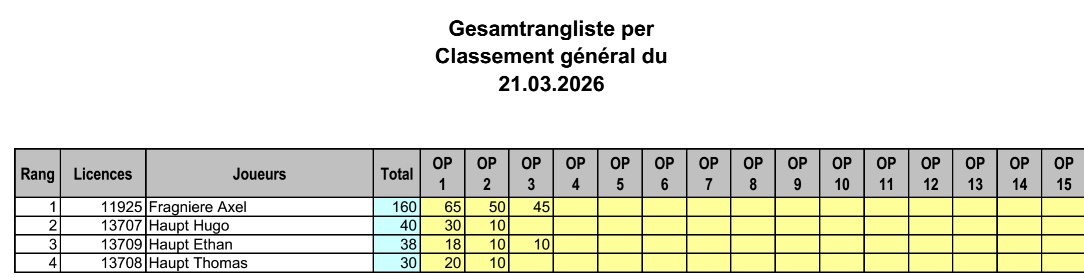 Classement Juniors et Ecoliers