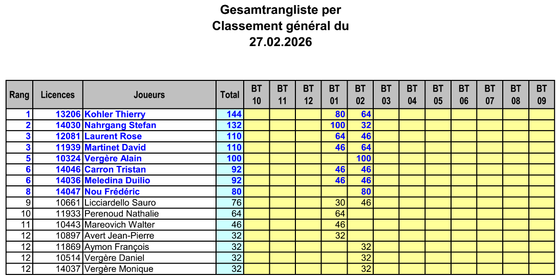 Classement Billard Tours >