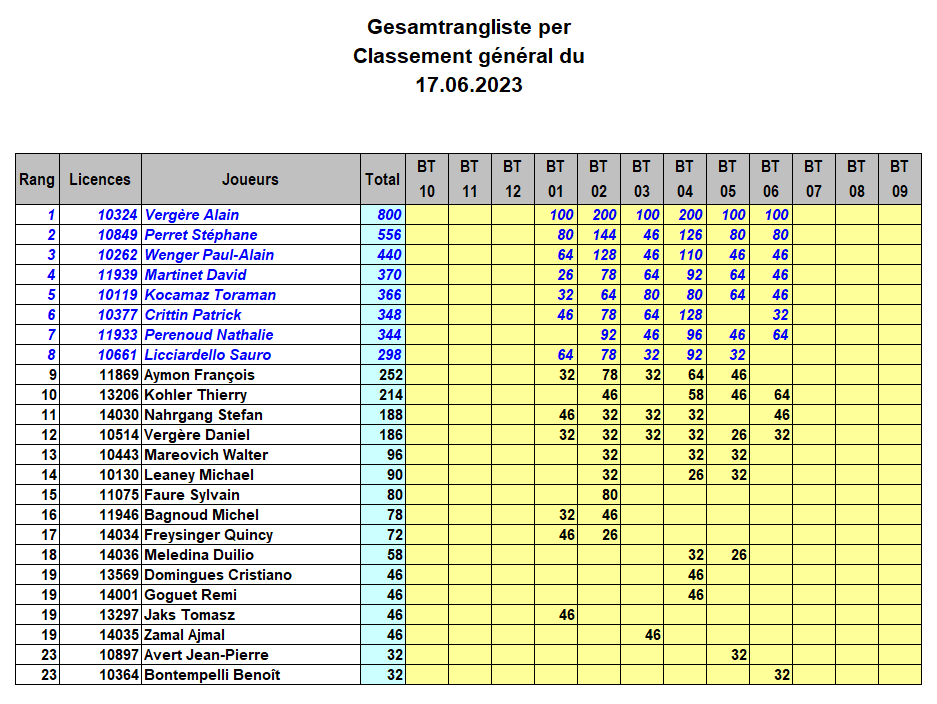 Classement général